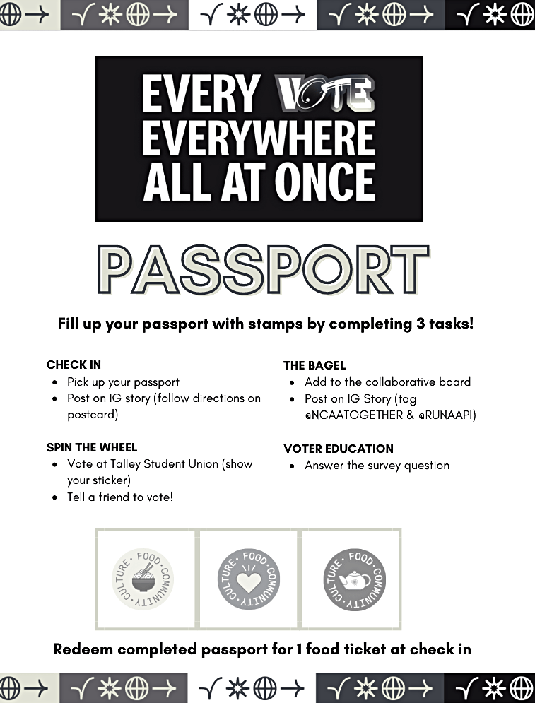 Every Vote Every Where All At Once was a youth-first and culture-forward get-out-the-vote activation that took place at NC State University in Raleigh, NC, a leading public research university that was also the site of an early polling location. Wake County, which houses Raleigh, also has the highest number of Asian American voters in the state of North Carolina.